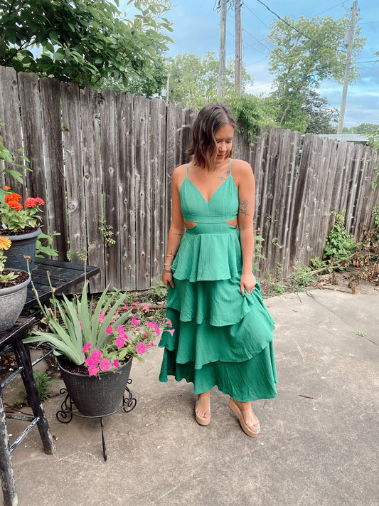 Chasing Sunsets Green Cut Out Ruffle Dress